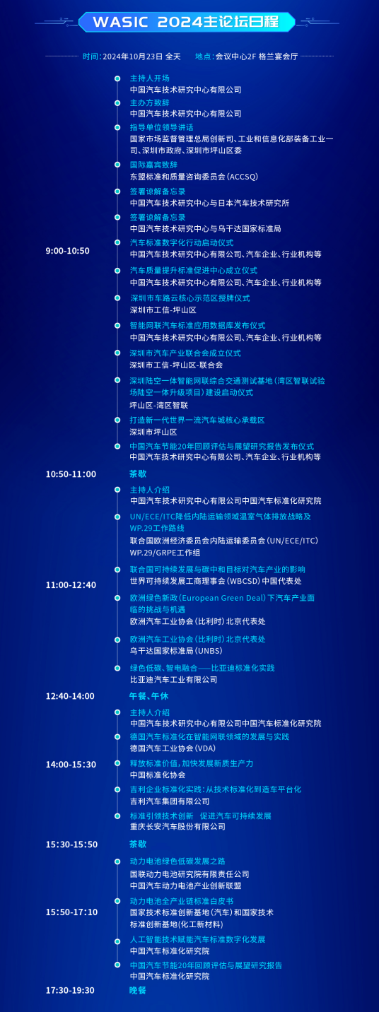 簡(jiǎn)介:主論壇以“綠色低碳、數(shù)智引擎,標(biāo)準(zhǔn)賦能汽車(chē)產(chǎn)業(yè)可持續(xù)發(fā)展”為主題,重點(diǎn)邀請(qǐng)政府、國(guó)內(nèi)外機(jī)構(gòu)、企業(yè)等各界重磅嘉賓,圍繞聯(lián)合國(guó)可持續(xù)發(fā)展目標(biāo)及《國(guó)家標(biāo)準(zhǔn)化發(fā)展綱要》,開(kāi)展全球汽車(chē)技術(shù)標(biāo)準(zhǔn)法規(guī)、標(biāo)準(zhǔn)化理論創(chuàng)新及中國(guó)實(shí)踐等熱點(diǎn)話題探討,同時(shí)涵蓋2場(chǎng)標(biāo)準(zhǔn)化行動(dòng)儀式、2項(xiàng)國(guó)際化諒解備忘錄簽約儀式、3項(xiàng)重點(diǎn)成果發(fā)布儀式。主論壇將強(qiáng)化大會(huì)高端論壇的引領(lǐng)作用,匯聚行業(yè)智慧,形成國(guó)際觀察或國(guó)際共識(shí),延伸國(guó)際標(biāo)準(zhǔn)化共同研究項(xiàng)目,推動(dòng)中國(guó)與國(guó)際、國(guó)外標(biāo)準(zhǔn)化組織機(jī)構(gòu)的交流、合作及標(biāo)準(zhǔn)互認(rèn),為推動(dòng)全球汽車(chē)產(chǎn)業(yè)可持續(xù)高質(zhì)量發(fā)展建言獻(xiàn)策。
