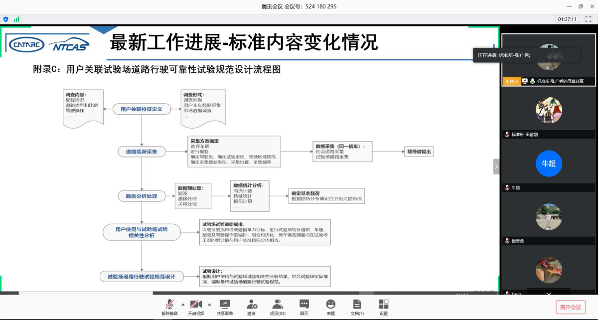 中汽中心標(biāo)準(zhǔn)所張廣秀首先介紹了工作組近期的工作安排,為按照要求繼續(xù)做好防控工作,避免大規(guī)模人員聚集,確保行業(yè)專家安全,工作組將采用電話、網(wǎng)絡(luò)視頻會議等形式開展各項工作。目前工作組在研標(biāo)準(zhǔn)10余項,本次會議主要針對已立項的標(biāo)準(zhǔn)項目展開討論,張廣秀介紹了第十六次工作組會后各在研標(biāo)準(zhǔn)項目的工作情況,并通報了已發(fā)布、已立項、提交立項等標(biāo)準(zhǔn)項目的基本情況,并針對整車試驗方法標(biāo)準(zhǔn)體系規(guī)劃進行了深入討論。工作組將陸續(xù)安排在研標(biāo)準(zhǔn)項目的技術(shù)交流討論會,同時鼓勵標(biāo)準(zhǔn)牽頭單位組織開展多種形式的技術(shù)討論。