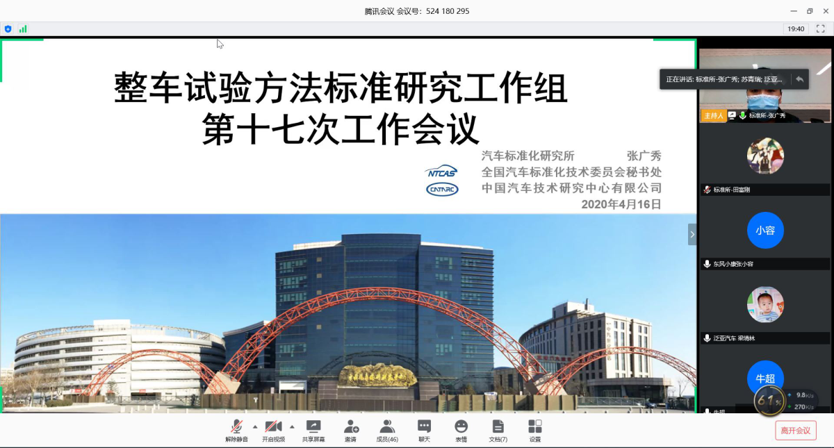 整車試驗方法標(biāo)準(zhǔn)研究工作組第十七次工作組會議 以網(wǎng)絡(luò)視頻形式召開