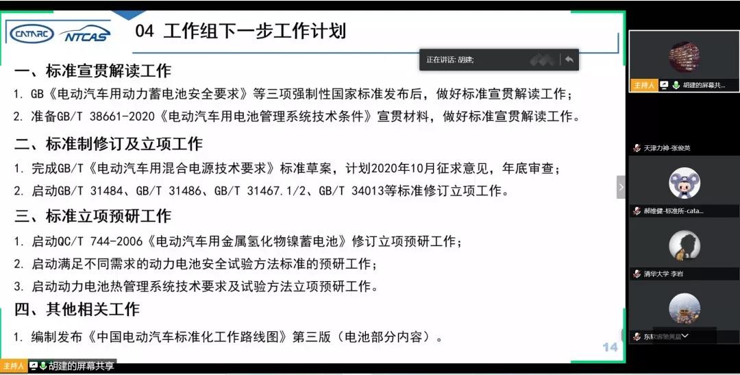 2020年4月29日,電動汽車用動力蓄電池標準研究工作組二屆十四次工作會議以視頻會議形式召開,來自國內(nèi)外電動汽車整車、動力電池、檢測機構(gòu)、高校及科研院所等單位的200多位專家代表參加了本次會議,中國汽車技術(shù)研究中心有限公司標準化研究所總工程師劉桂彬和標準法規(guī)研究四室主任鄭天雷出席會議。