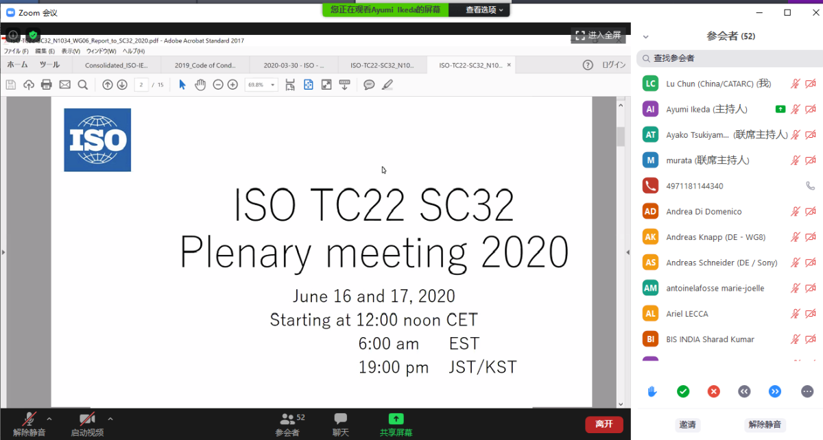 2020年6月24-25日,國際標(biāo)準(zhǔn)化組織道路車輛委員會數(shù)據(jù)通訊分技術(shù)委員會(ISO/TC22/SC31)第12次年會以視頻形式召開。